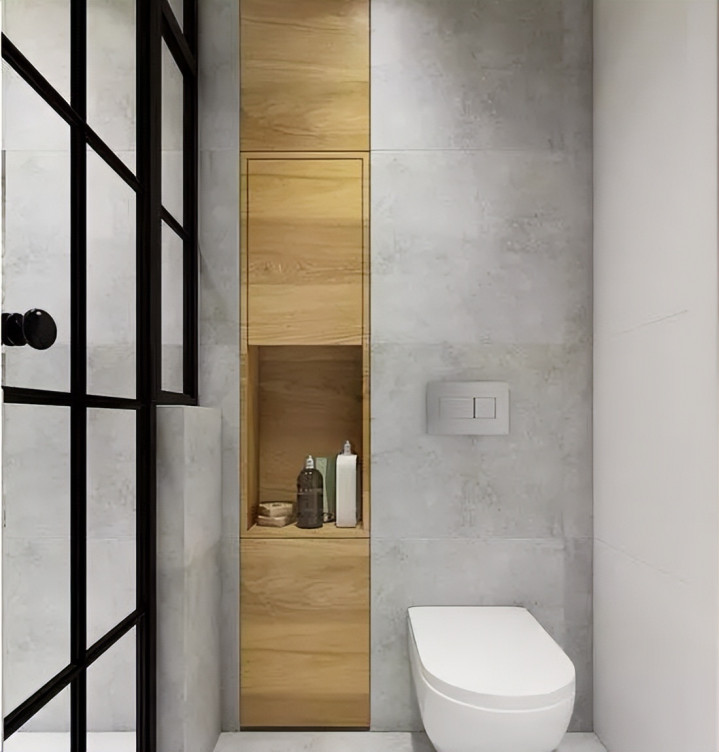 视觉整齐统一:物品收进壁龛后,卫生间立刻呈现出一种井然有序的高级感,比任何昂贵的装饰都显质感。