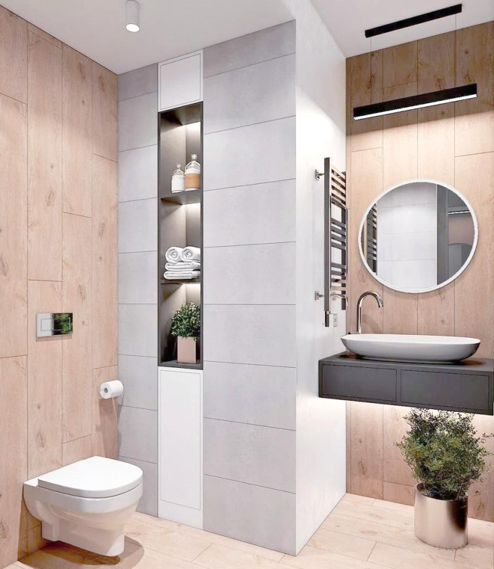 这些地方通常只有十几到二十几厘米的宽度,深度却有几十厘米,放什么都别扭,最后往往沦为灰尘的聚集地。其实,只需一点小小的改造,这里就能化身为一个美观又实用的“嵌入式壁龛”,所有洗漱用品都能整齐上墙,台面从此清爽无比。