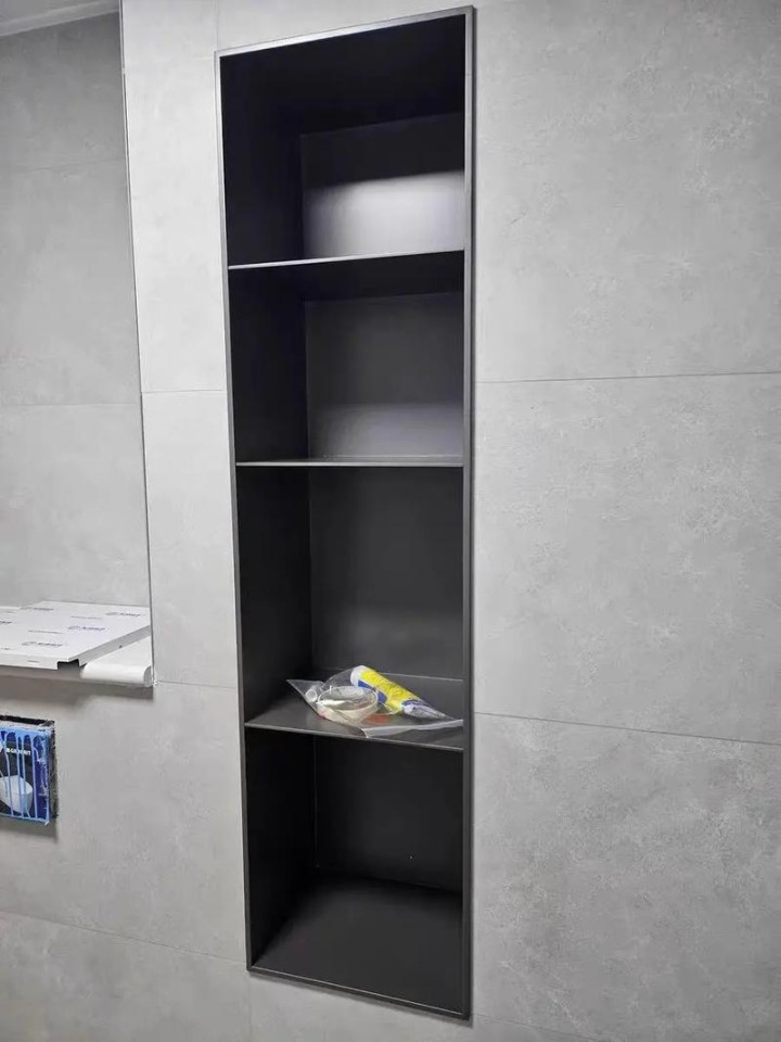 不锈钢/铝制置物架:网上有很多量身定制的窄款置物架。选择烤漆或拉丝工艺的,防锈效果好。买回来直接嵌入或固定在两侧墙体上,是最快、最省事的方案。